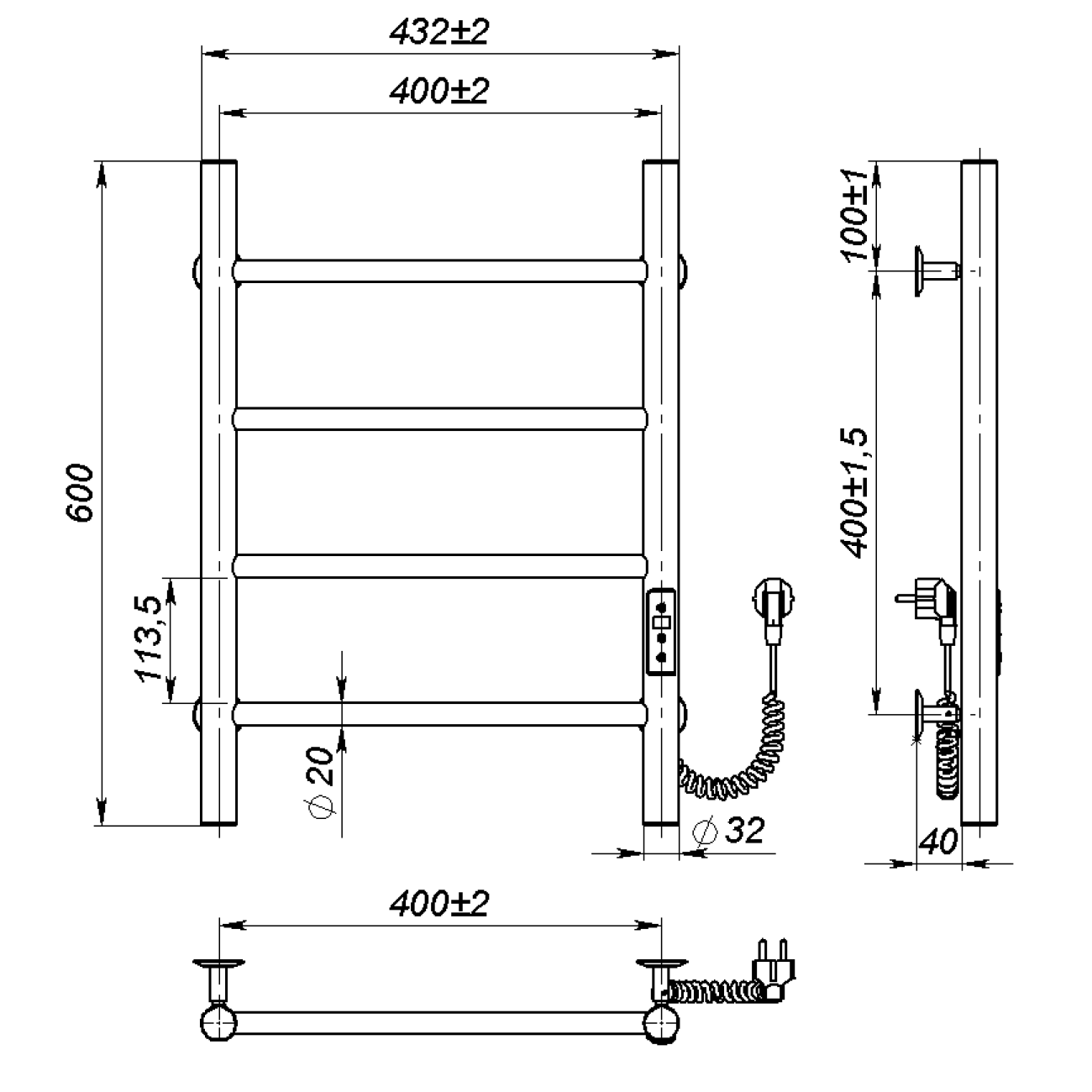 Відгуки про Рушникосушарка електрична Round (600*400,4,Сіра,Праве підключення,JD03)