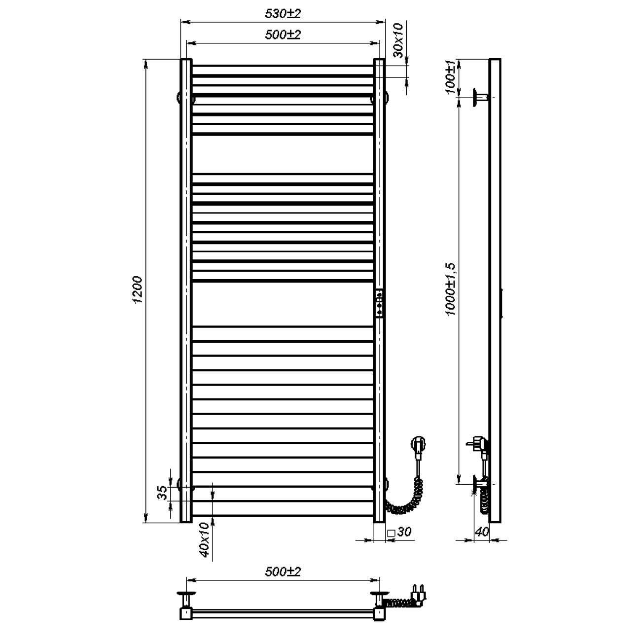 Основні характеристики Рушникосушарка електрична Silvia (1200*500,17,Сіра,Праве підключення,JD04)