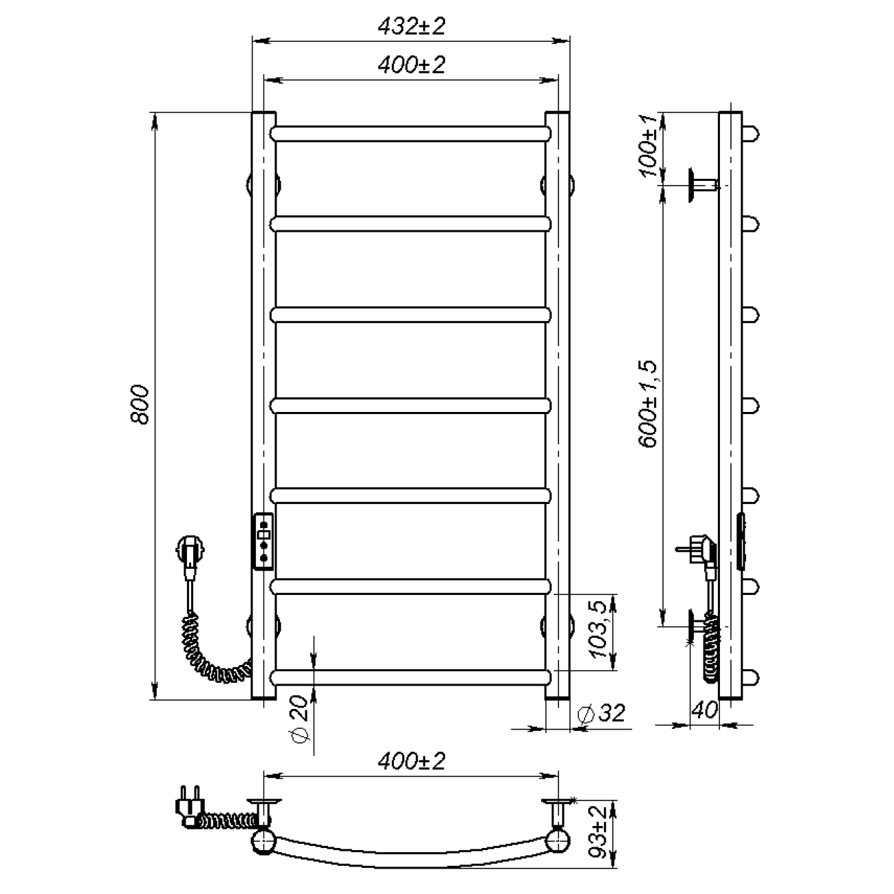 Основні характеристики Рушникосушарка електрична Sora (800*400,7,Біла,Ліве підключення,JD03)