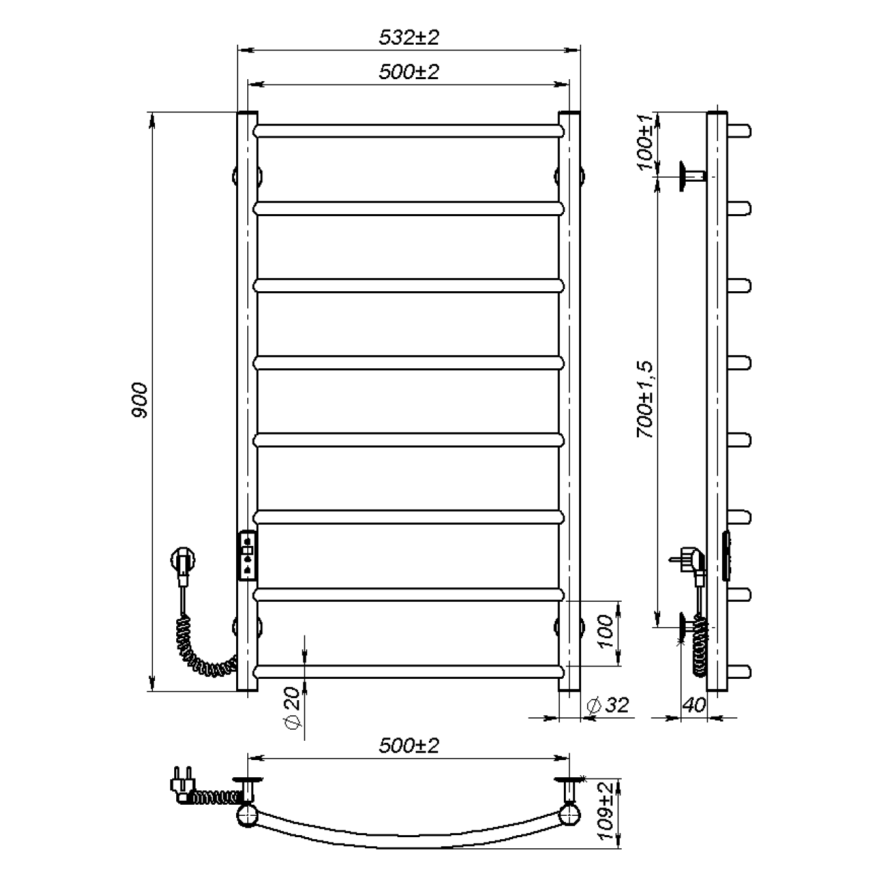 Відгуки про Рушникосушарка електрична Sora (900*500,8,Сіра,Ліве підключення,JD03)