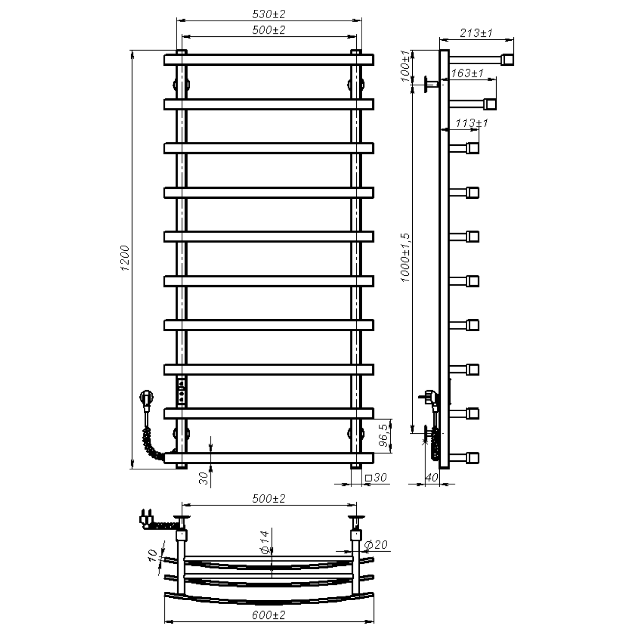 Основні характеристики Рушникосушарка електрична Terra (1200*500,10,Сіра,Ліве підключення,JD04)