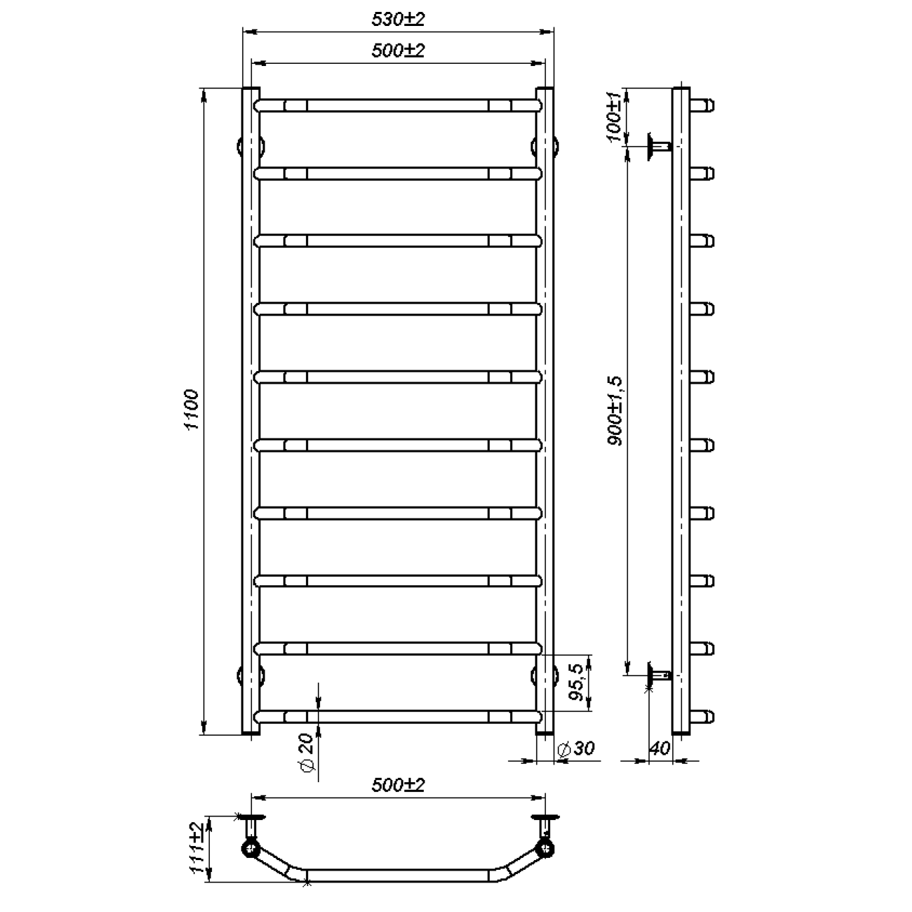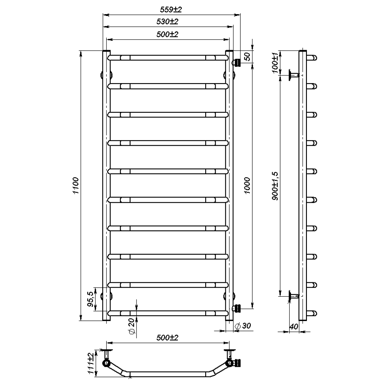 Основні характеристики Рушникосушарка водяна Ava (1100*500,10,Полірована,Ліве підключення)