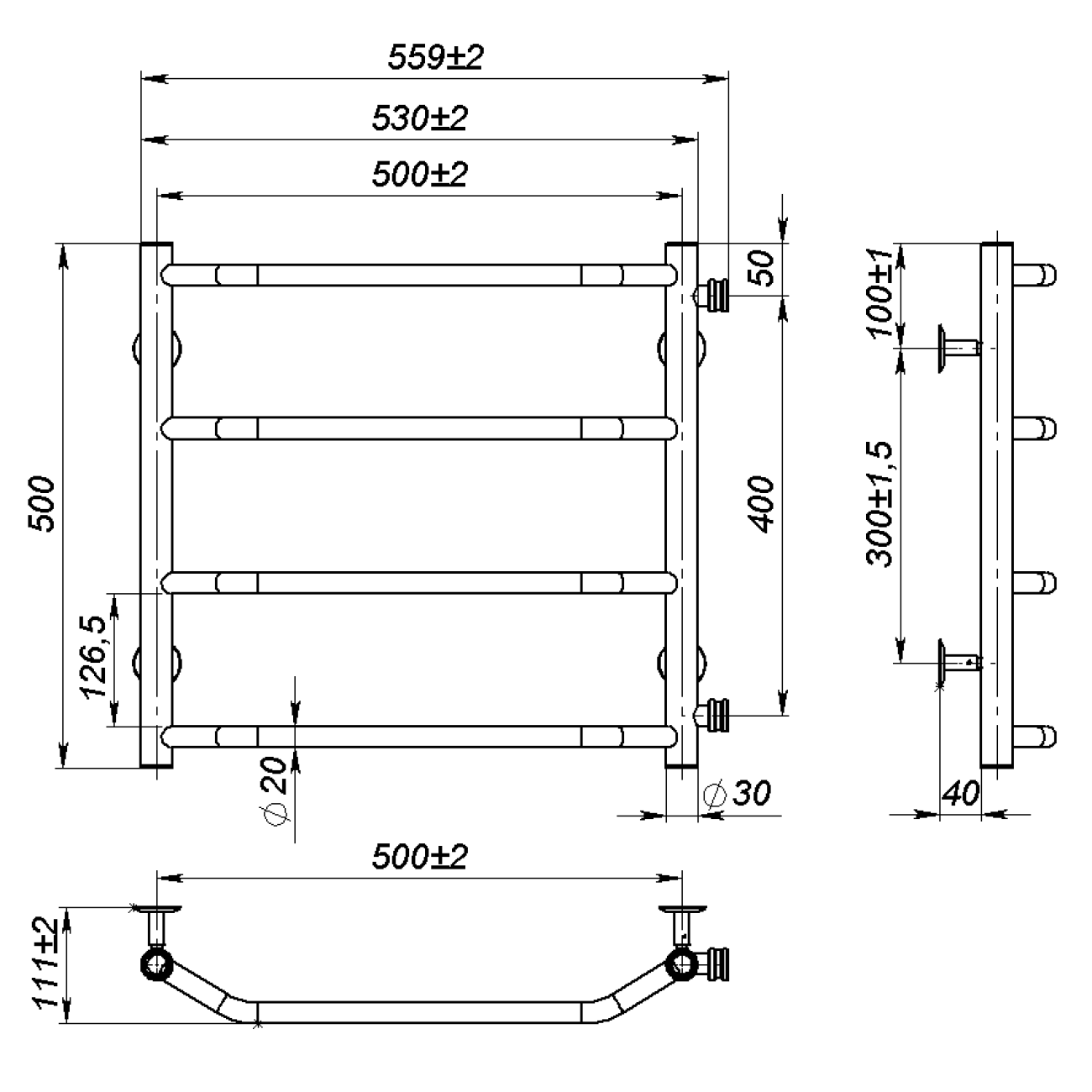 Основні характеристики Рушникосушарка водяна Ava (500*500,4,Сіра,Ліве підключення)