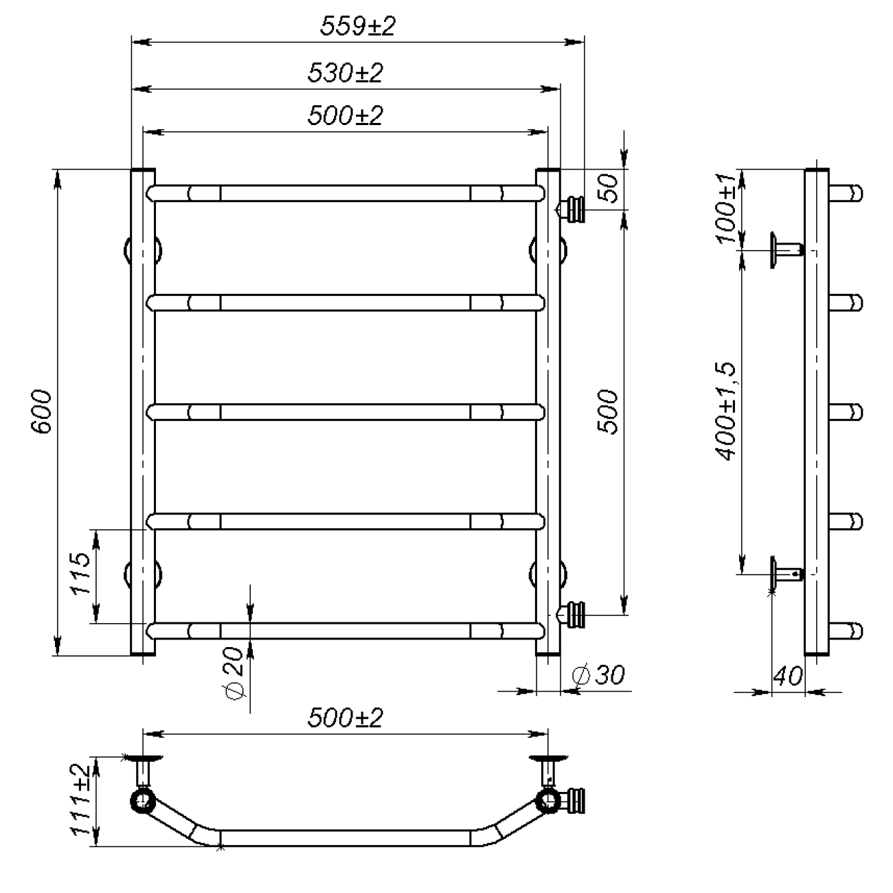 Основні характеристики Рушникосушарка водяна Ava (600*500,5,Сіра,Ліве підключення)