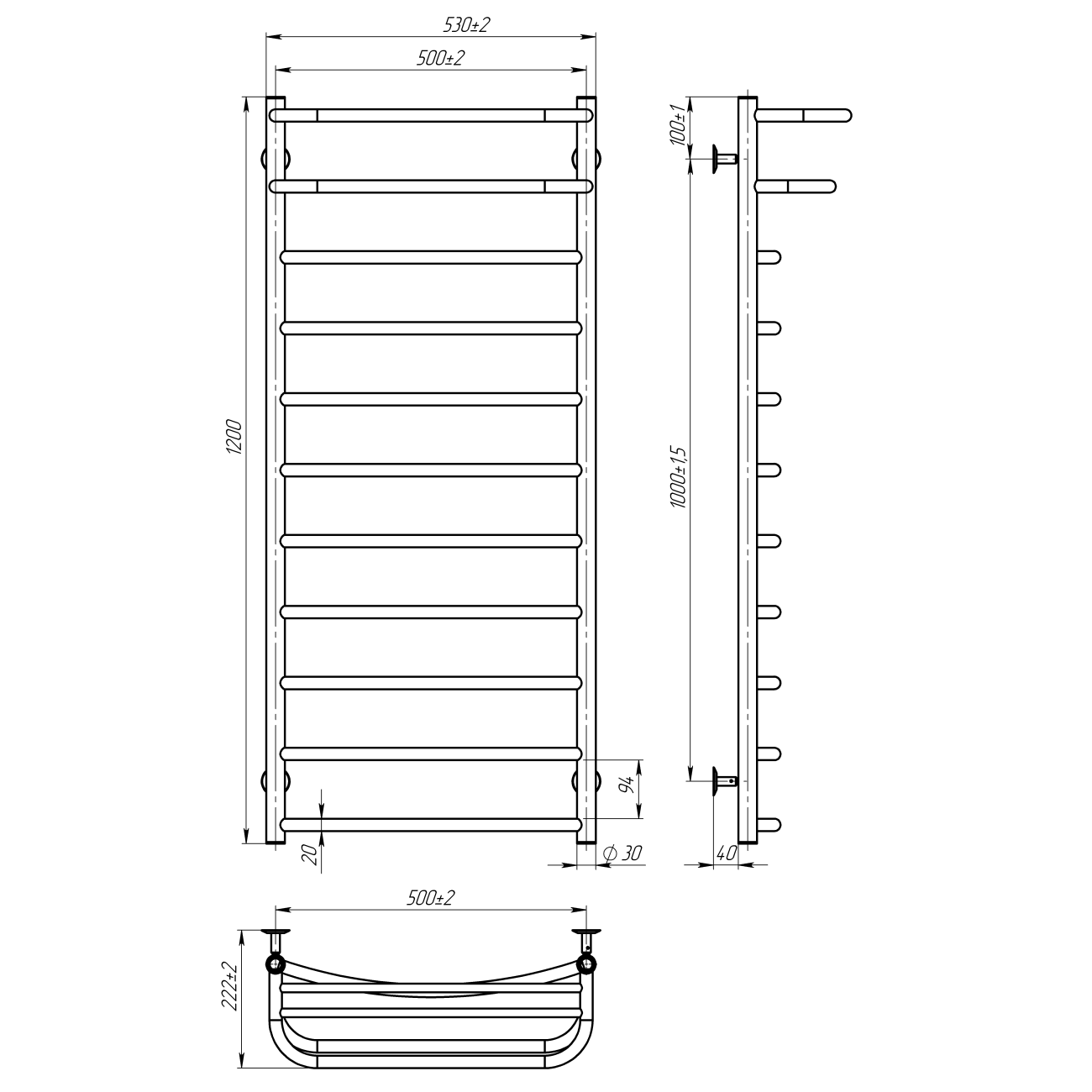 Основні характеристики Рушникосушарка водяна Optima (1200*500,11,Сіра,Нижнє підключення)
