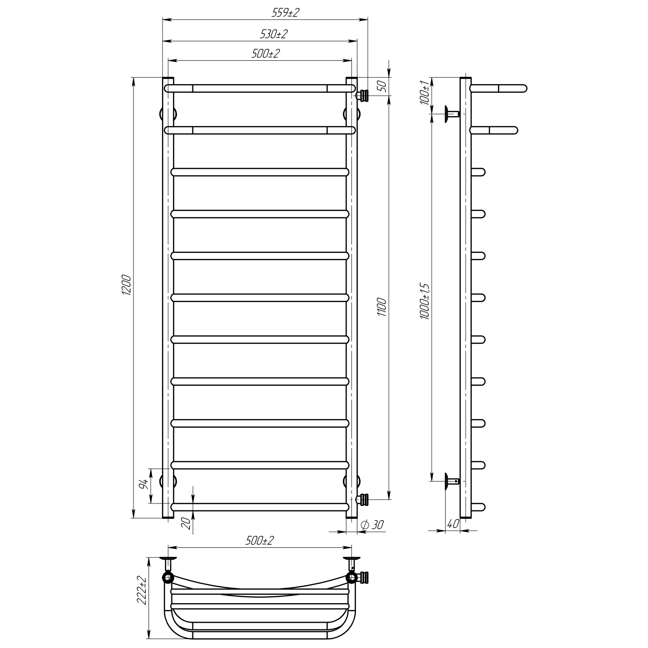 Опис Рушникосушарка водяна Optima (1200*500,11,Сіра,Нижнє підключення)