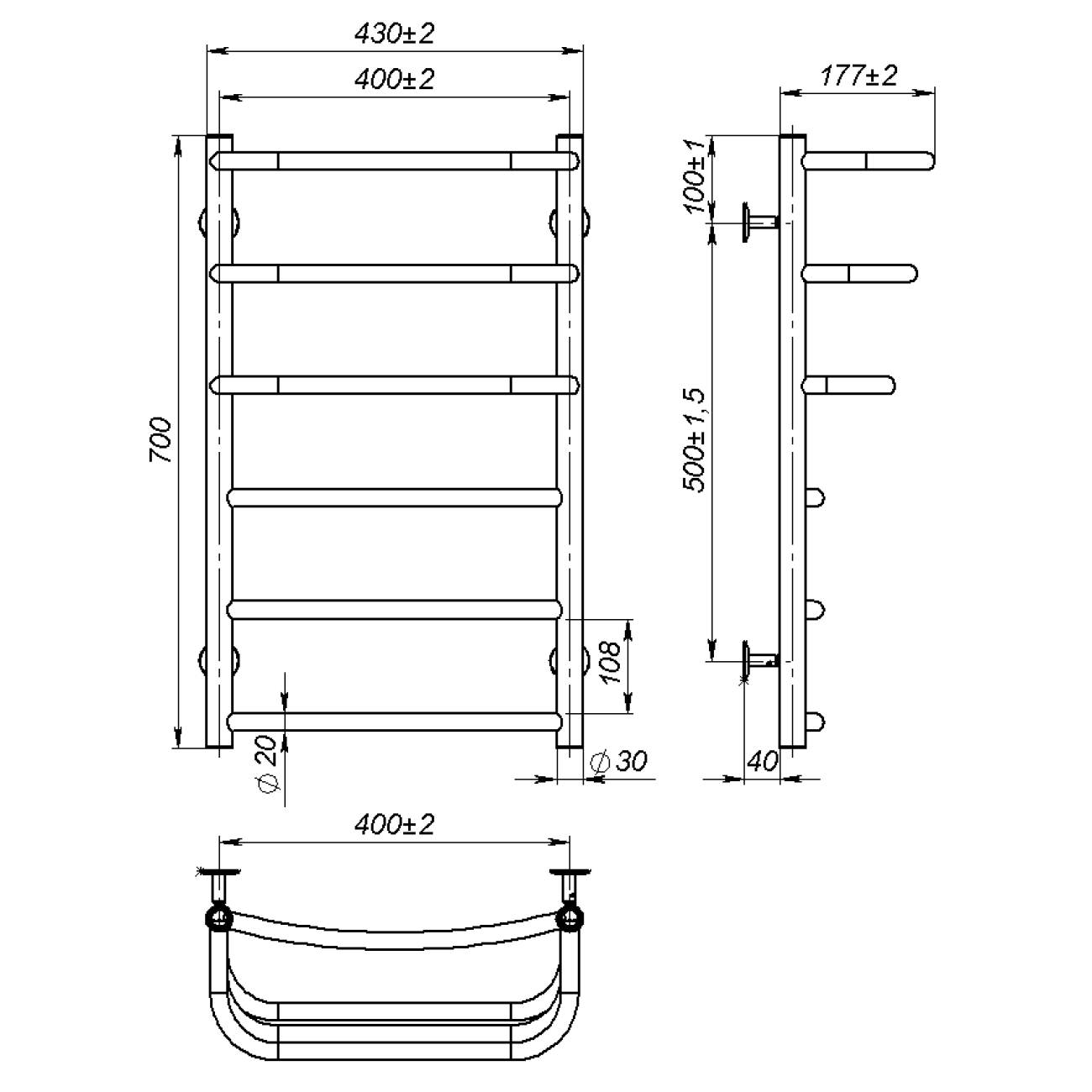 Основні характеристики Рушникосушарка водяна Prima (700*400,6,Біла,Праве підключення)