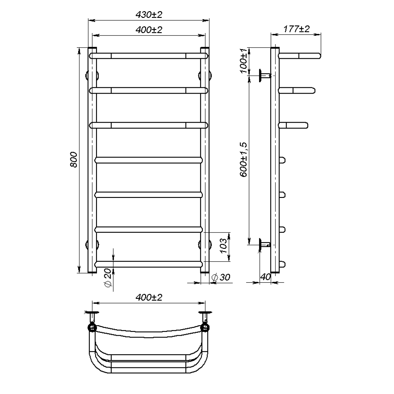 Основні характеристики Рушникосушарка водяна Prima (800*400,7,Чорна,Праве підключення)