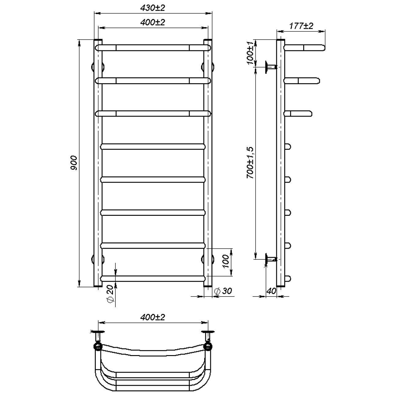 Основні характеристики Рушникосушарка водяна Prima (900*400,8,Чорна,Праве підключення)
