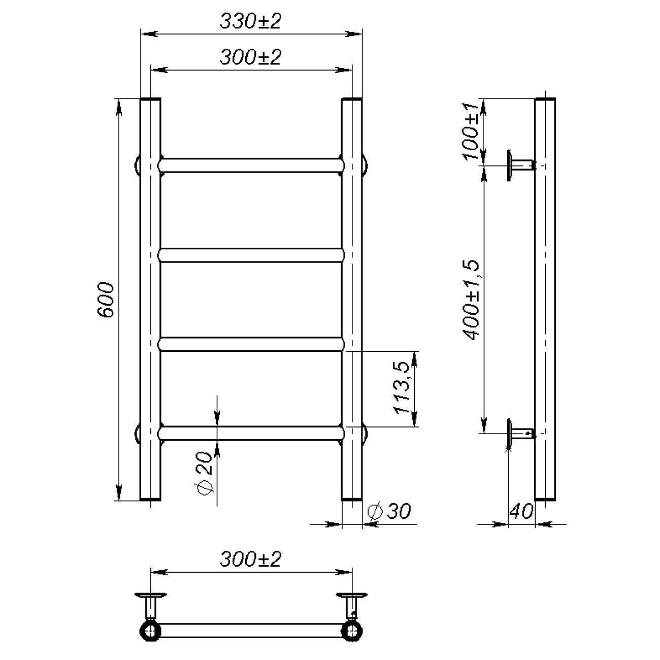 Основні характеристики Рушникосушарка водяна Round (600*300,4,Біла,Ліве підключення)