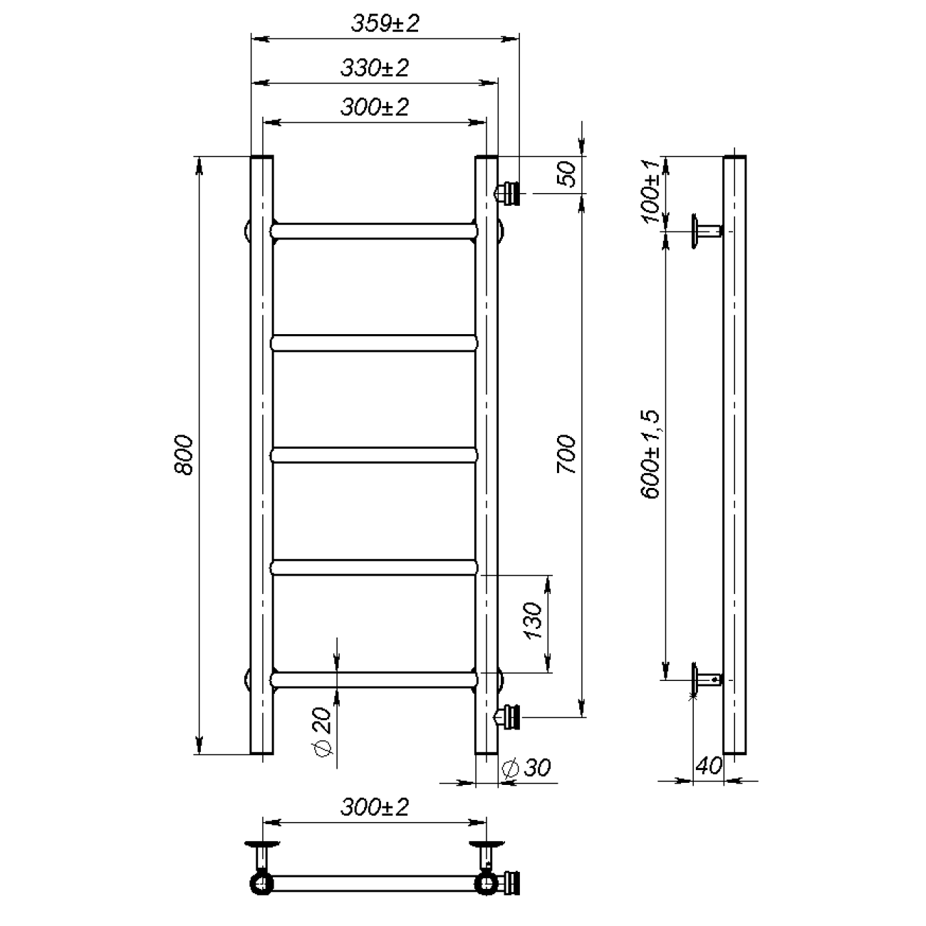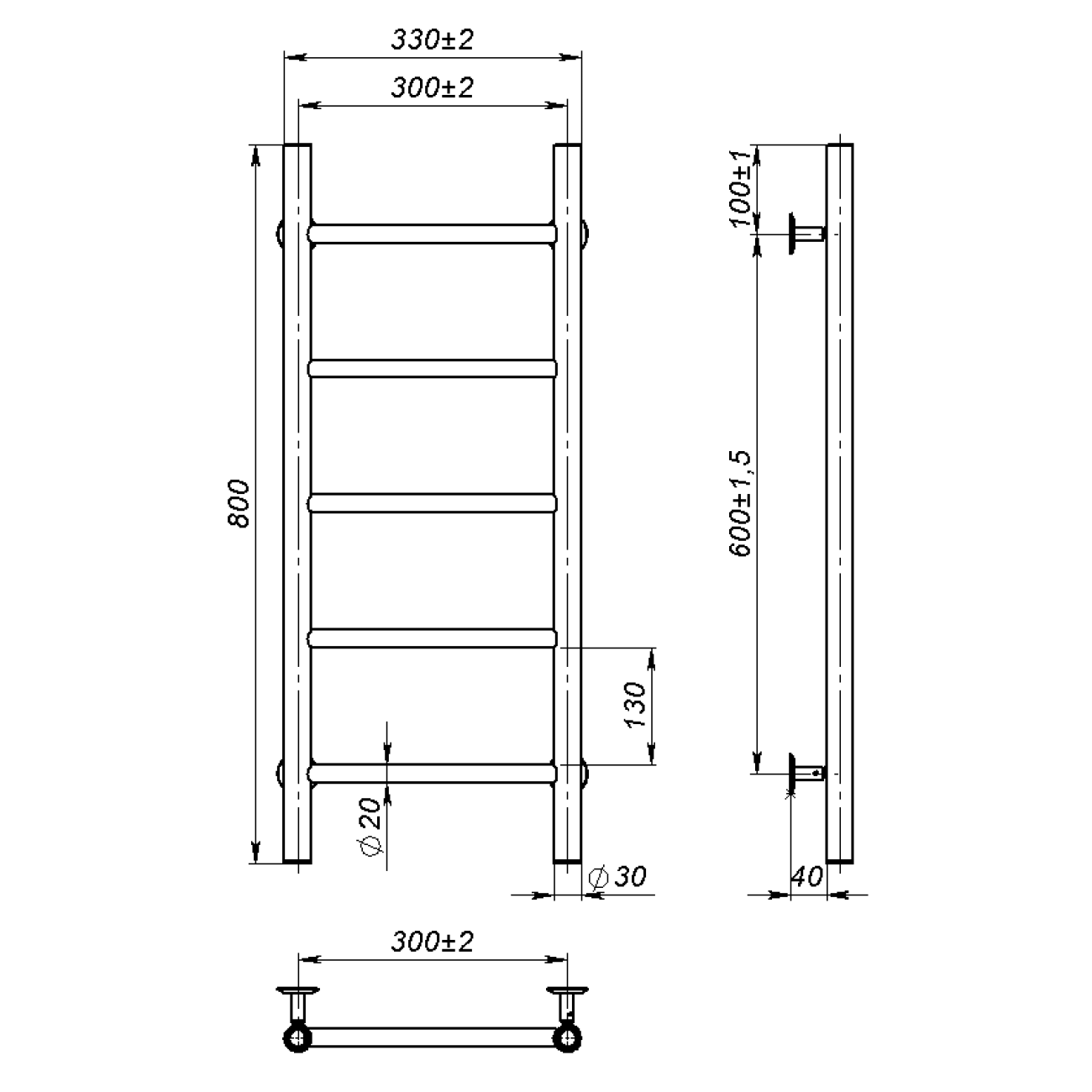 Рушникосушарка водяна Round (800*300,5,Чорна,Праве підключення)