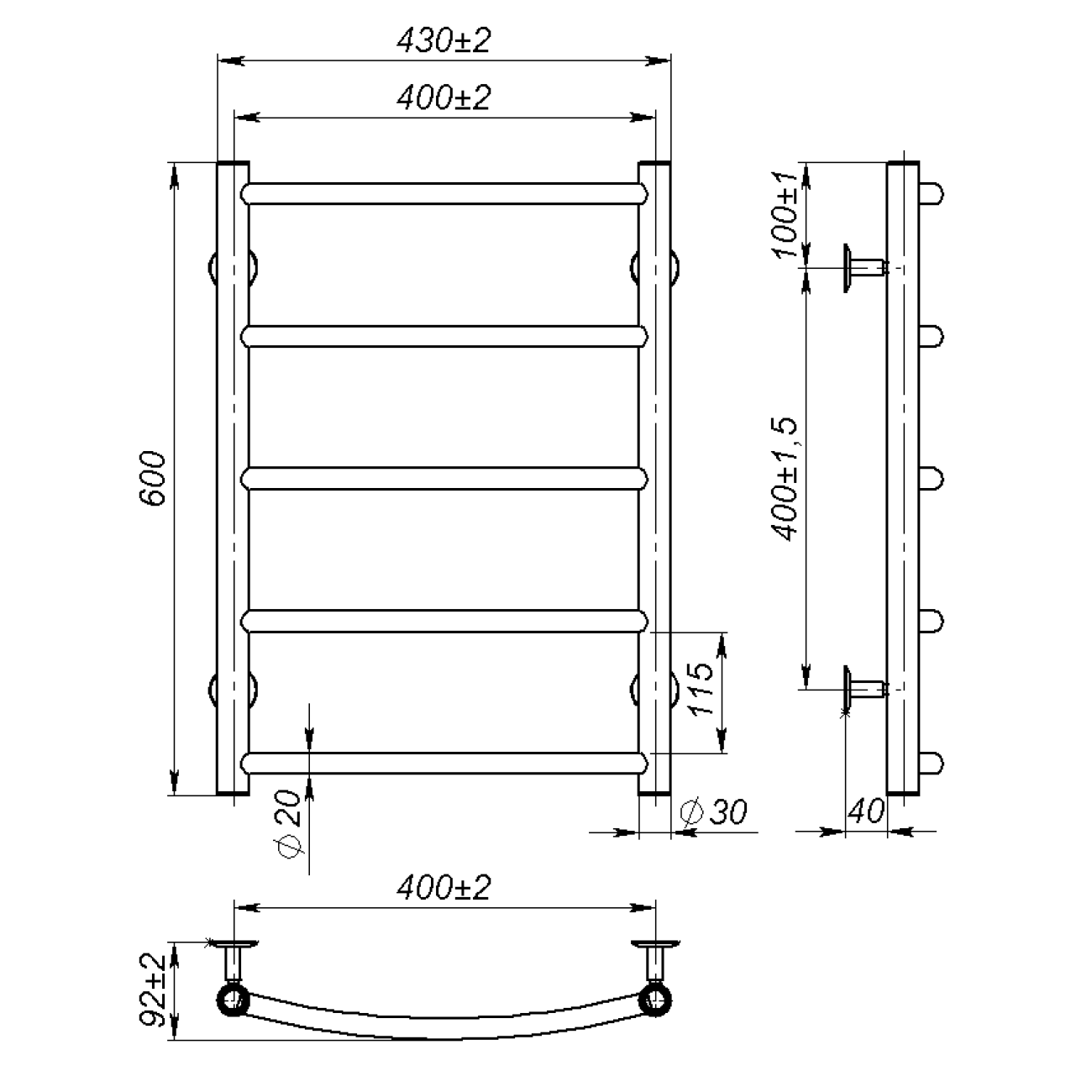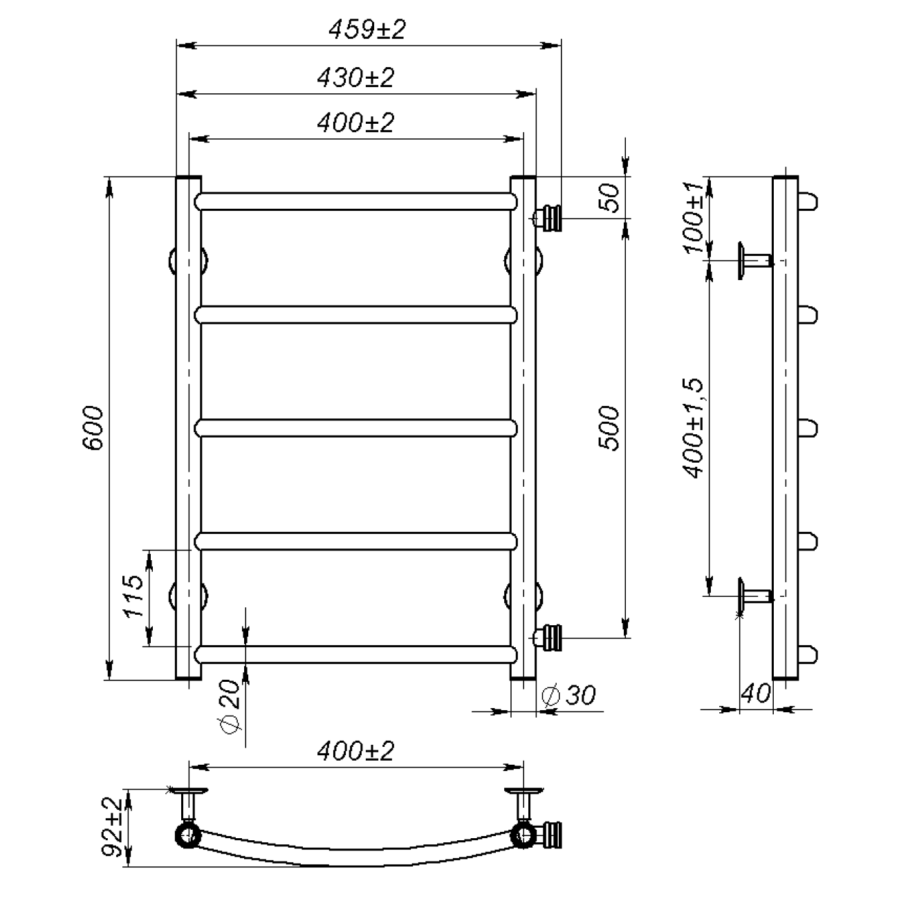 Основні характеристики Рушникосушарка водяна Sora (600*400,5,Біла,Праве підключення)