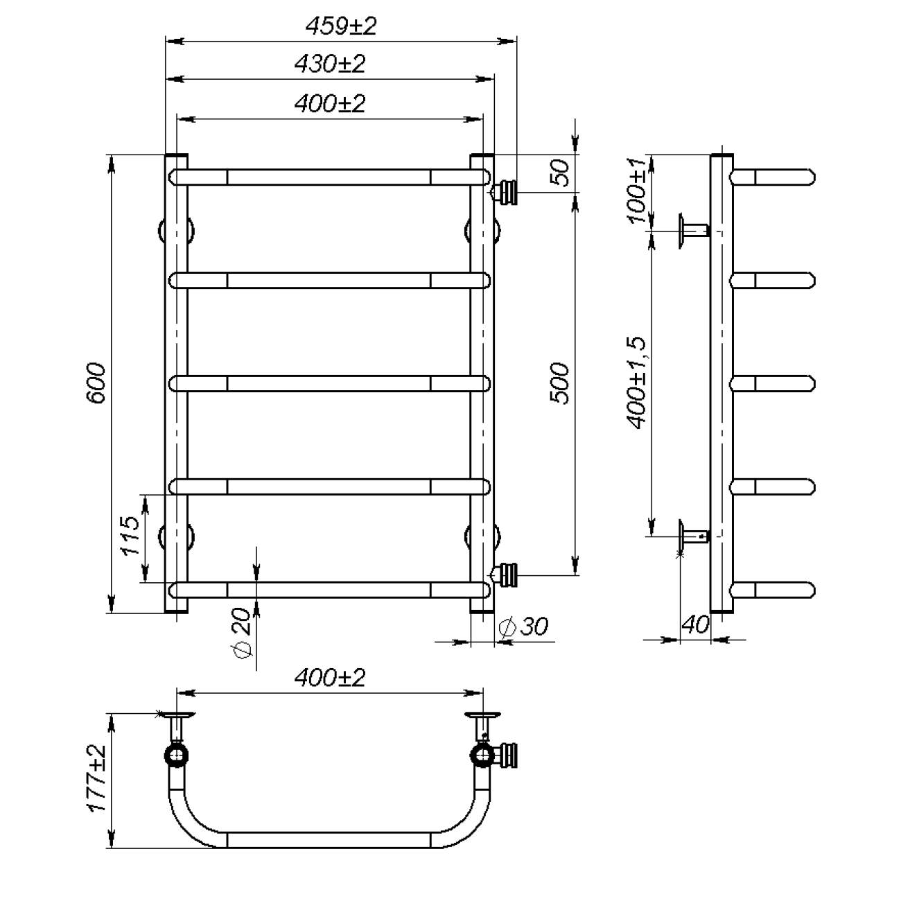 Опис Рушникосушарка водяна Sunny (600*400,5,Сіра,Ліве підключення)